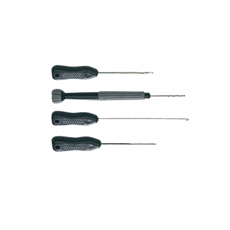 Wygodny i praktyczny zestaw dzięki któremu w wygodny i szybki sposób można zamocować różnego rodzaju przynęty na włosie. Dzięki czterem różnych narzędziom możemy mocować przynęty na wiele różnych rodzajów przyponów karpiowych takich jak m.in. standardowy włos, włos z gumką lateksową.