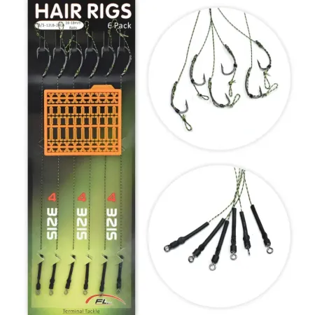 Komplet 6 wysokiej jakości przyponów karpiowych do metody włosowej na kulkę proteinową, pellet, ziarna, itp. wykonanych na plecionce o średnicy 16-18mm i kutych,