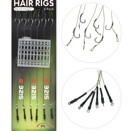 Komplet 6 wysokiej jakości przyponów karpiowych do metody włosowej na kulkę proteinową, pellet, ziarna, itp. wykonanych na plecionce o średnicy 16-18mm i kutych,