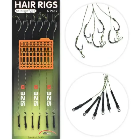 Komplet 6 wysokiej jakości przyponów karpiowych do metody włosowej na kulkę proteinową, pellet, ziarna, itp. wykonanych na plecionce o średnicy 16-18mm i kutych,