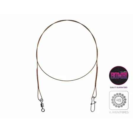 Żyłka BOMB! jest zakończona z jednej strony krętlikiem a z drugiej agrafką, ułożoną w mocno związanej pętli. W każdym opakowaniu znajdują się dwie sztuki tej mocnej żyłki!
