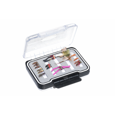 Pudełko zapewnia łatwy dostęp do zawartości i chroni przynęty przed uszkodzeniem. Wysoka jakość wykonania sprawia, że to niezawodny wybór dla każdego wędkarza poszukującego sprawdzonego rozwiązania do organizacji zestawu muchowego.