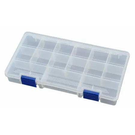 Przezroczyste pokrywy sprawiają, że cała zawartość jest widoczna. Pudełko posiada drenaże, dzięki czemu woda sprawnie przepływa i akcesoria pozostają suche. Wygodna rączka sprawi, że transport nie będzie uciążliwy. Ponadto pojemnik zamykany jest na zatrzaski, więc nie musisz się martwić, że coś wyleci. Idealny na przynęty, woblery i inne akcesoria wędkarskie.