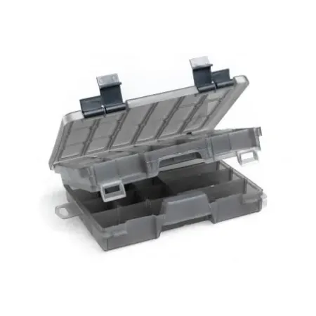 Bardzo praktyczne pudełko na przynęty i akcesoria wędkarskie. Pudełko dwustronne - pomieści jeszcze więcej drobiazgów. Wyposażone w dodatkowe przekładki, umożliwiające samodzielne ułożenie wielkości przegródek. Półprzeźroczyste tworzywo, pozwala podejrzeć co jest w środku.