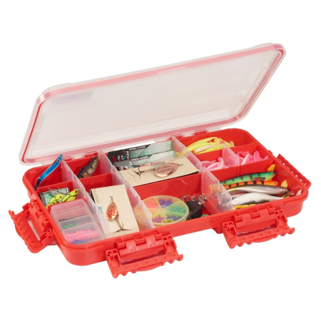 Wodoodporne pudełko wykonane z trwałego materiału ABS+PP. Wyposażone w silikonową uszczelkę oraz system zatrzasków, który gwarantuje podwójne zabezpieczenie pudełka przed wodą oraz przed otwarciem. Wewnątrz pudełka znajduje się 12 mniejszych, ruchomych przegród oraz 3 większe, podłużne przegrody.