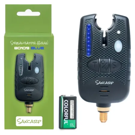 Sygnalizator wyposażony jest w linię 8 diod LED sygnalizującą kierunek oraz intensywność brań oraz poziomy ustawień. Dźwięk również jest inny dla każdego kierunku. Urządzenie posiada wyjście na swinger elektroniczny. Sygnalizator zasilany jest baterią R9 - 9V. To dość istotne - te baterie mają olbrzymią pojemność a zarazem są tanie.
